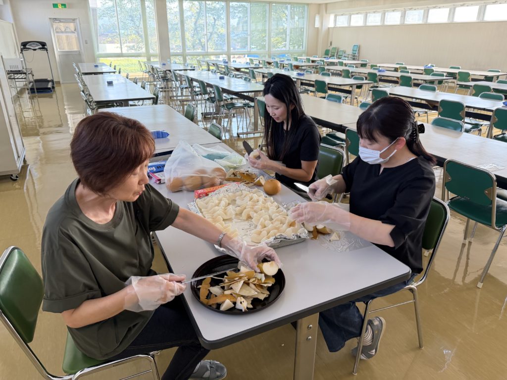 今回は梨を用意し、女性従業員2名に皮むきをお願いしました🔪みずみずしい梨は